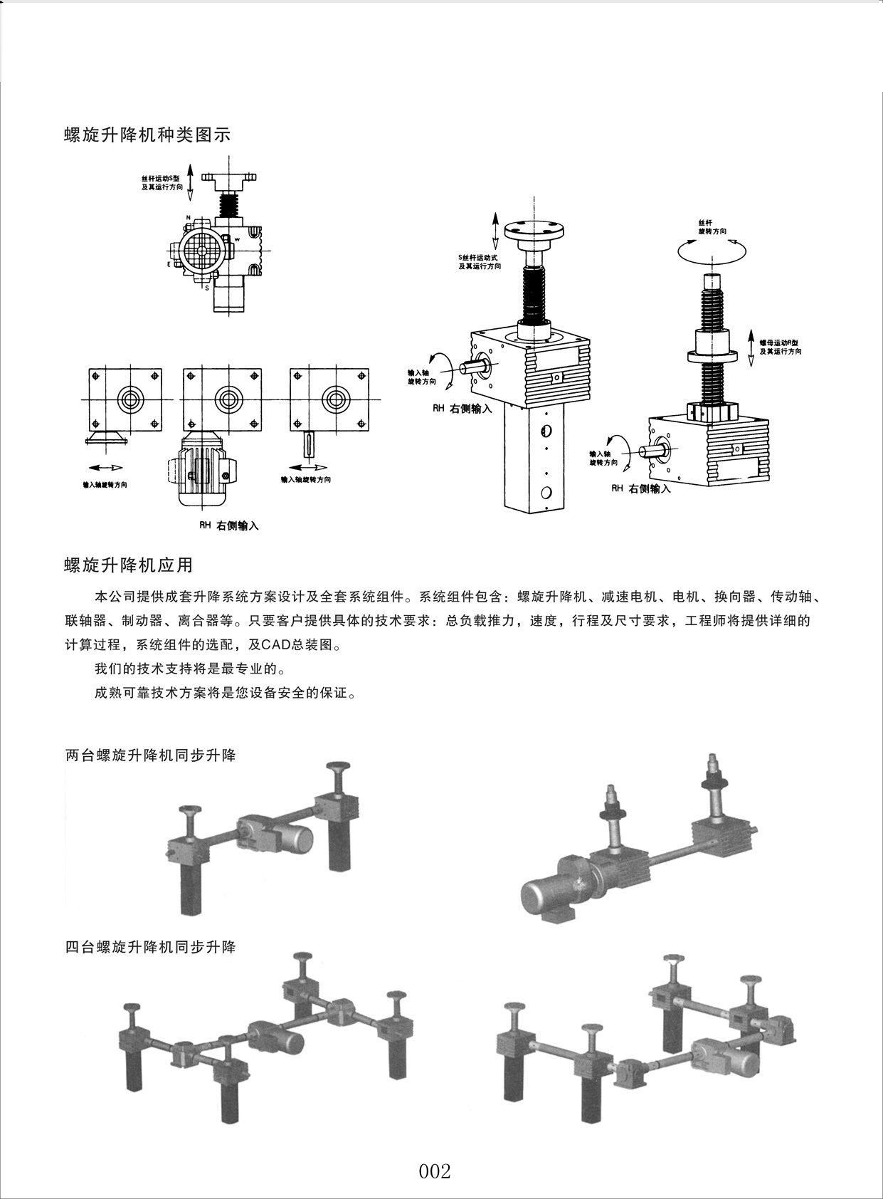 七、 绝对同步,同一电机可同时驱动多台螺旋升降机,机械同步;